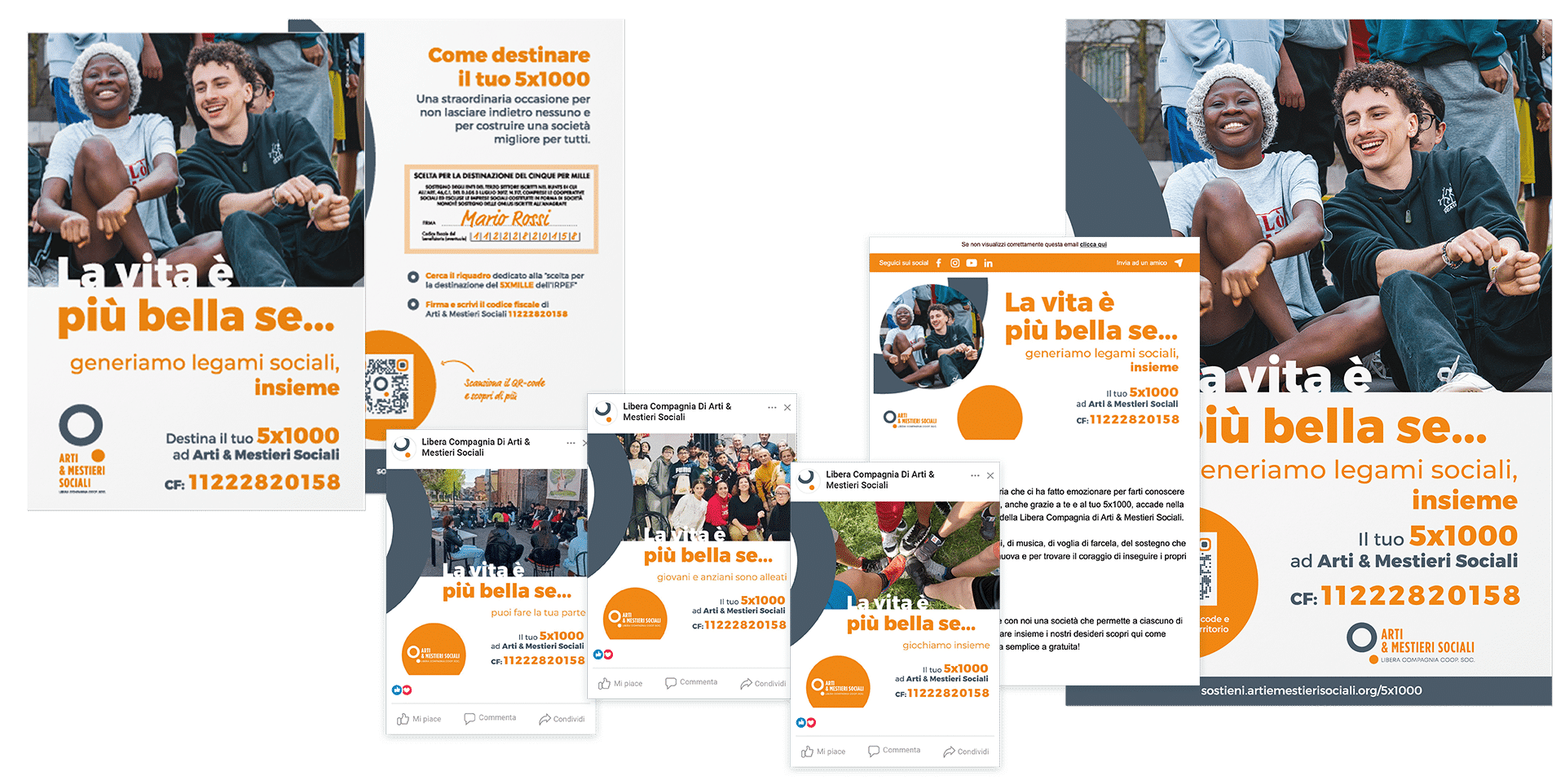 E poi declina il concept creativo per ogni strumento e canale che hai individuato, cura i copy dei messaggi e le informazioni utili a guidare il contribuente verso la sua scelta di destinazione del 5×1000.