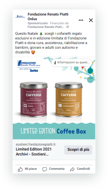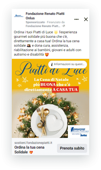 A seconda del tipo di organizzazione le idee si sprecano: una guida speciale dedicata al territorio, un catalogo dei prodotti solidali, un contenuto da scaricare e colorare. L’importante è che sia un contenuto di valore per il target che vuoi andare ad intercettare. Una campagna di Facebook leads ads unita a una bella landing sul tuo sito e avrete i contatti da attivare con una campagna di coltivazione via e-mail o sms.